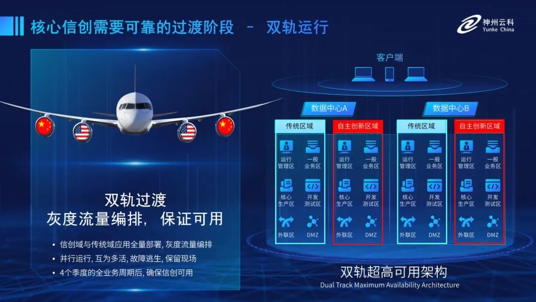 為幫助客戶更好地應對數(shù)字經(jīng)濟時代對應用可持續(xù)性的高要求,實現(xiàn)信創(chuàng)與數(shù)字化兼得,leyu.樂魚推出了雙軌超高可用架構(gòu)。雙軌超高可用架構(gòu)在雙活數(shù)據(jù)中心的分區(qū)調(diào)度基礎(chǔ)上,增加信創(chuàng)域和非信創(chuàng)域的分域調(diào)度,實行信創(chuàng)域與傳統(tǒng)域應用全量部署,使雙中心運營變?yōu)殡p中心四區(qū)域并行運行,互為多活,將傳統(tǒng)架構(gòu)變?yōu)榉謪^(qū)分域協(xié)同的多活雙軌超高可用架構(gòu)。幫助客戶在新架構(gòu)下,保障“信創(chuàng)”的同時解決性能瓶頸,提升穩(wěn)定性,保證應用可持續(xù)性,最終實現(xiàn)信創(chuàng)區(qū)域和非信創(chuàng)區(qū)域的平滑過渡,完成國產(chǎn)化替代目標?!?/p>